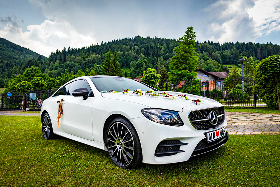 Nie zapominamy o zwolennikach bardziej nowoczesnych rozwiązań. Mercedes E Coupe w kolorze białym to propozycja dla tych, którzy cenią sobie połączenie nowoczesności z elegancją. Ten samochód zdecydowanie doda uroczystości charakteru i podkreśli jej rangę. Jego stylowy design sprawia, że jest to jeden z najczęściej wybieranych pojazdów na ślub.